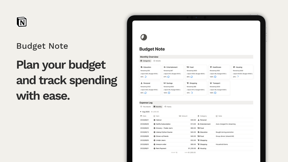 Create a clear monthly budget, stay aware of your limits, and keep spending on track with ease.